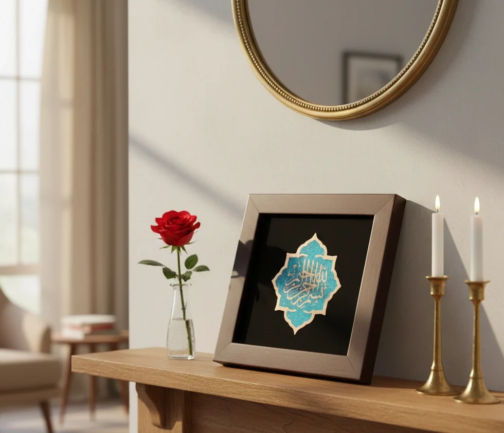 • قاب پتینه‌کاری بسم‌الله: اثر دست‌ساز با طراحی فاخر و هنری