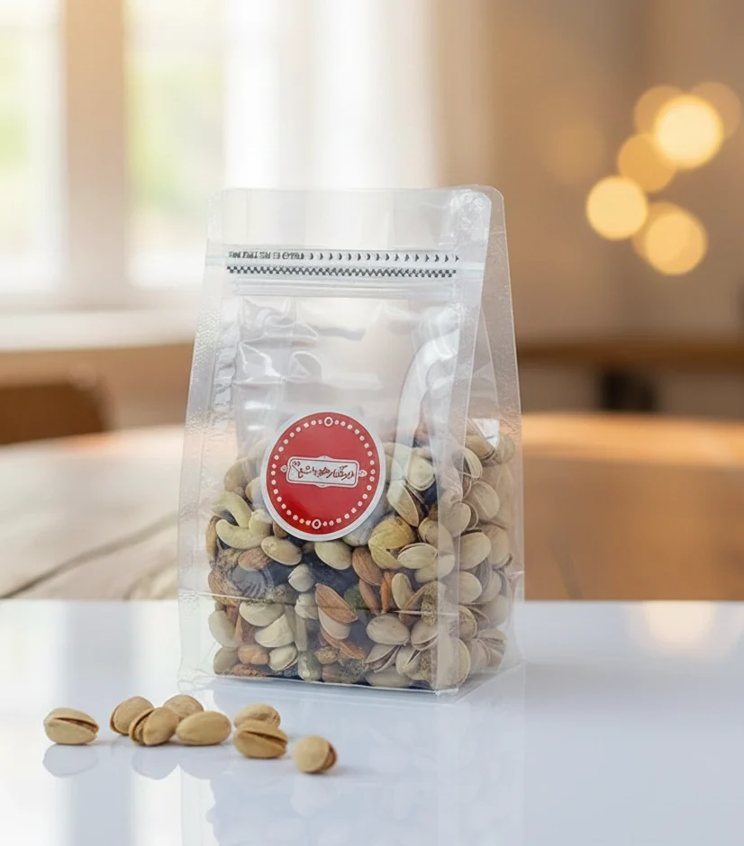 کیفیت بینظیر آجیل: شامل بهترین و تازهترین مغزها (مانند پسته) با طعم و عطر دلنشین که با رعایت کامل بهداشت و استانداردهای کیفی تهیه شدهاند.