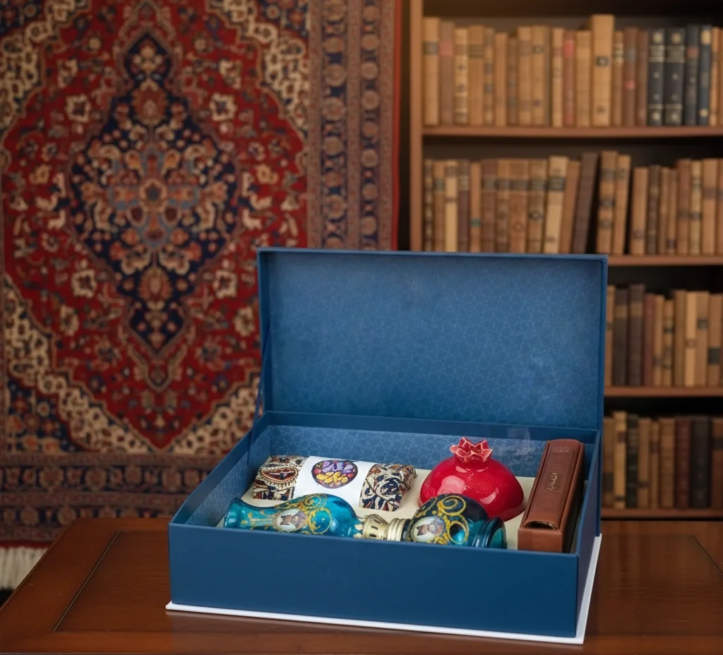 بستهبندی: قرارگرفته داخل جعبه هاردباکس لولایی طرح میهن (چو ایران، یلدا) سایز ۱۰*۲۰*۳۰ — محکم، شیک و مناسب هدیههای خاص.