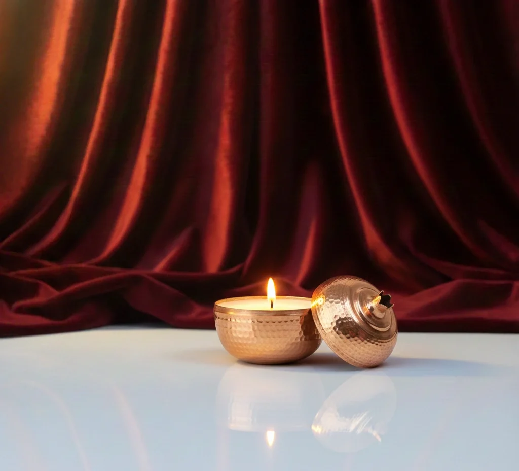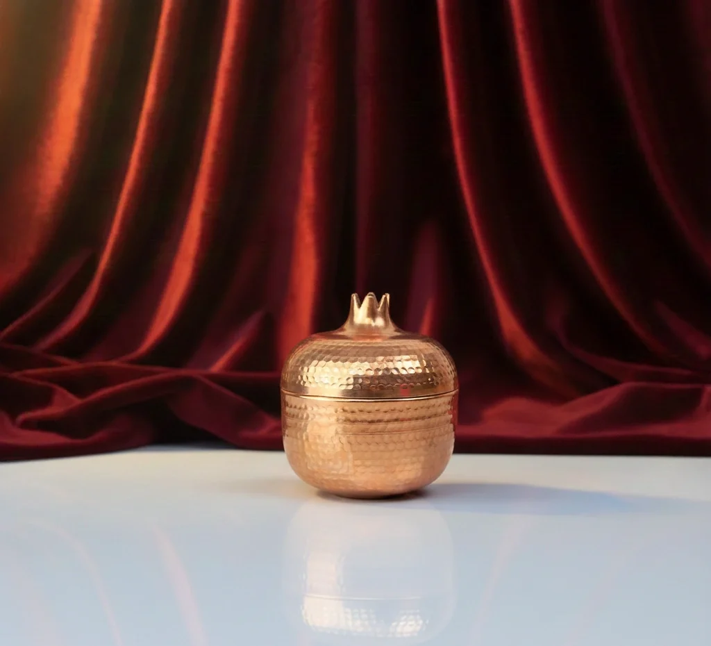 شمع و جاشمعی مسی طرح انار؛ خلق فضایی گرم و صمیمی برای شب نشینیها.