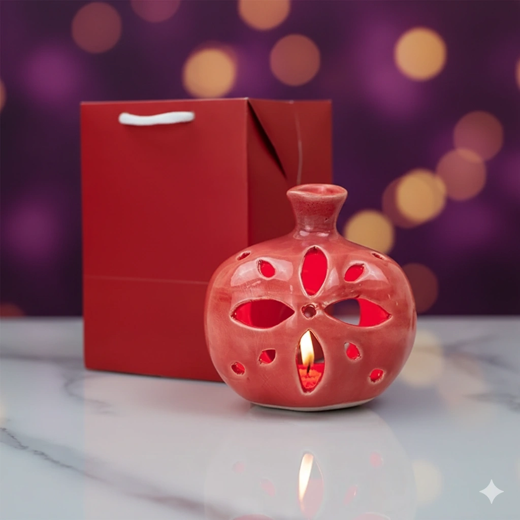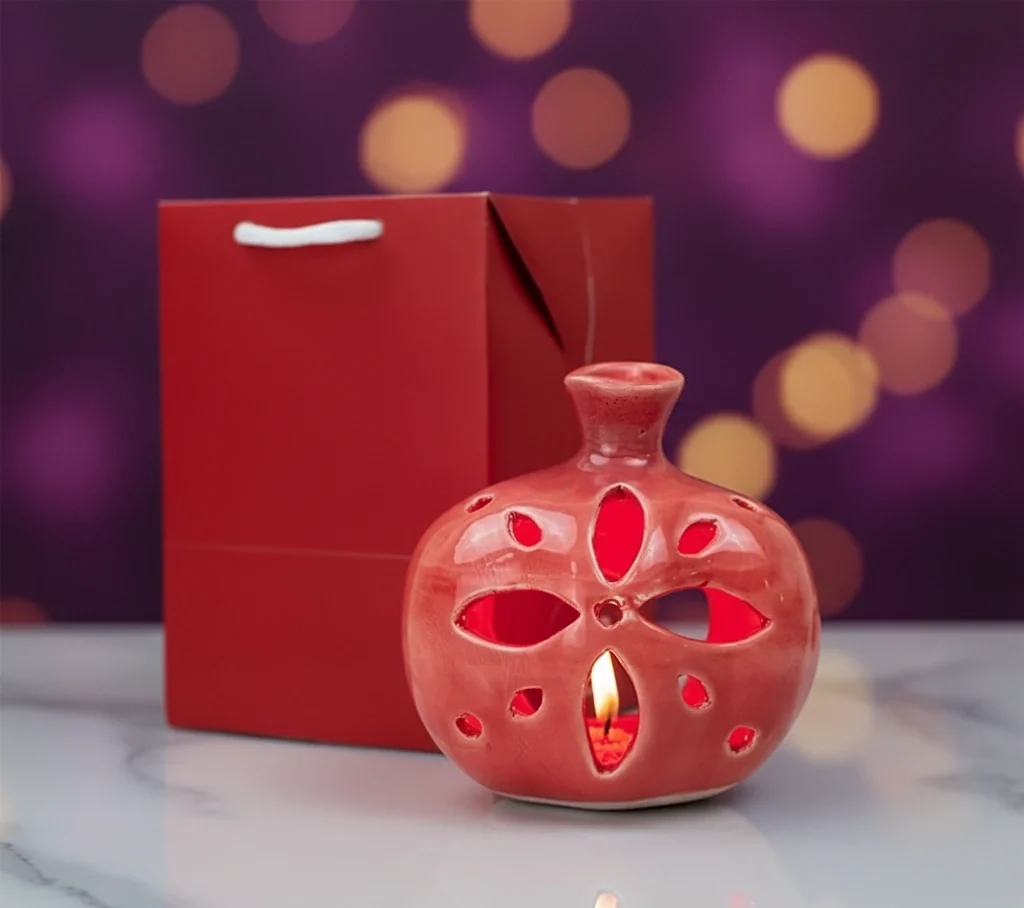 جاشمعی سرامیکی طرح انار | جلوه‌ای ویژه در نور کم