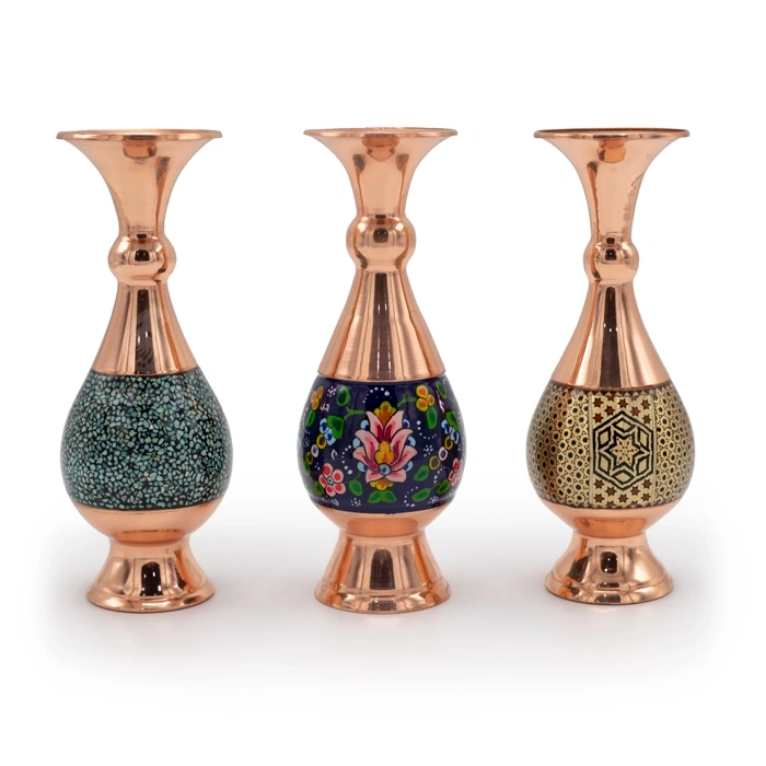گلدان تشعیر (مس و پرداز): سایز ۱۶ سانتیمتر – (نماد نقوش سنتی و درخشش مس)