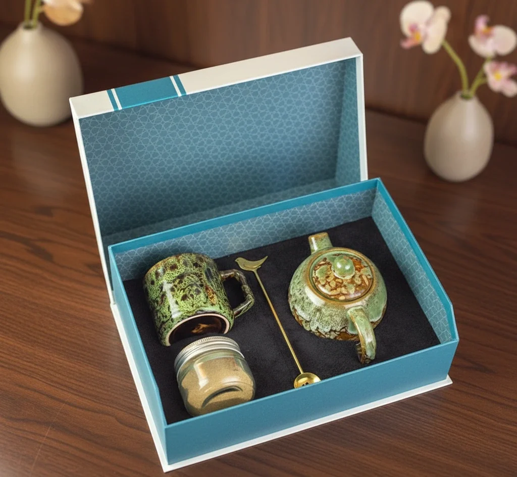 - قوری و لیوان سرامیکی خاص: با رنگها و طرحهای منحصربهفرد، این ست نه تنها زیباست، بلکه با نگهداشتن گرمای نوشیدنی، لحظات چاینوشی را دلپذیرتر میکند.