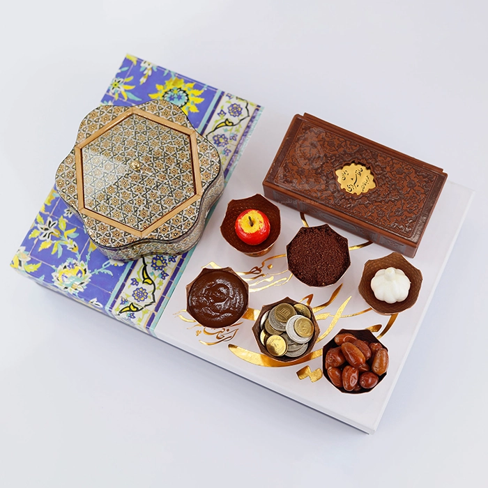 ست هدیه لوکس: هفت سین و شکلات‌خوری خاتم و دیوان حافظ
